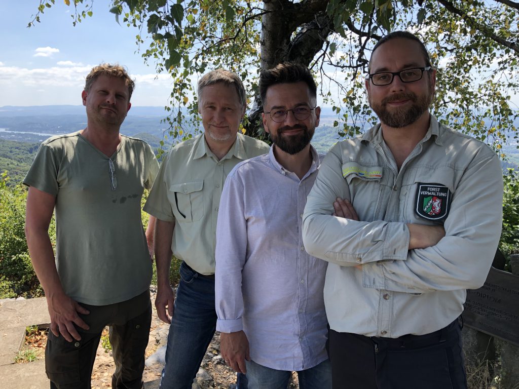 Heute Nachmittag informierte sich der SPD Landtagsabgeordnete und derzeitige Oppositionsführer im Landtag von Nordrhein-Westfalen Thomas Kutschaty in Begleitung von Peter Marchlewski im Rahmen eines Waldspazierganges mit der Landesvertretung der IG BAU über die aktuelle Schadenssituation im Wald. Die Kollegen Marc Redemann und Peter Wicke erläuterten in einer 1,5 stündigen Tour durch das Siebengebirge bis hinauf zum Oelberg die zum Teil katastrophalen Entwicklungen im Wald. Selbst auf dieser kurzen Wegstrecke konnten anhand von Fichten mit massiven Befall durch Borkenkäfer, Buchen mit Trockenschäden, Eschen mit Anzeichen des Triebsterbens und befallene Lärchen die vielfältigen Schadbilder plastisch dargestellt werden.